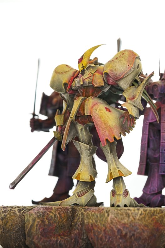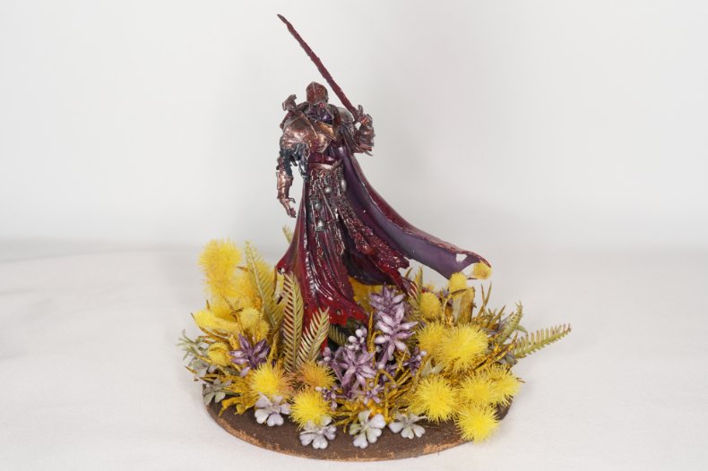 全身を覆う鎧の金属感のある塗装表現が重厚でダークな雰囲気となっており、鮮やかな花畑との対比が美しい作品です。たどり着いた先は天国か死神の幻想なのか・・・物語が色々想像できそうです!