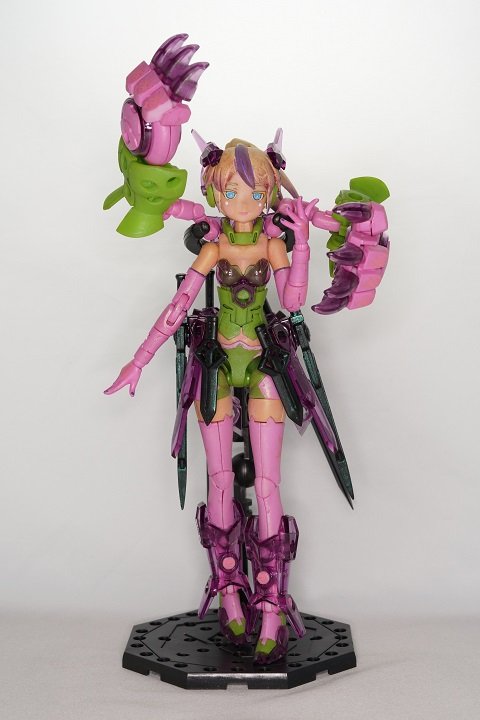 説明書通りの配色を再現していただきました。なんと初めてのエアブラシ塗装で難しい髪のグラデーションに挑戦!そのうえで再現していただいております。そのチャレンジ精神に感服いたします。爪の塗装も丁寧に塗り分けていただきました。