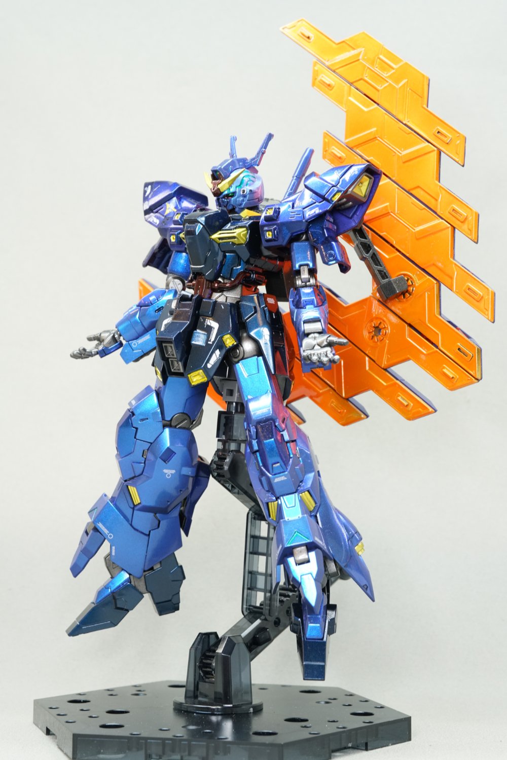 月夜に輝く蒼の機体!ユッタ・カーシムの搭乗機、ムーン・ムーンで生まれたガンダムをお持ちいただきました!こちらもばじーな様の作品!2体目はフリー部門でエントリーいただきました。サイコプレートのオレンジが本体のティターンズブルーと対比になってインパクト大!