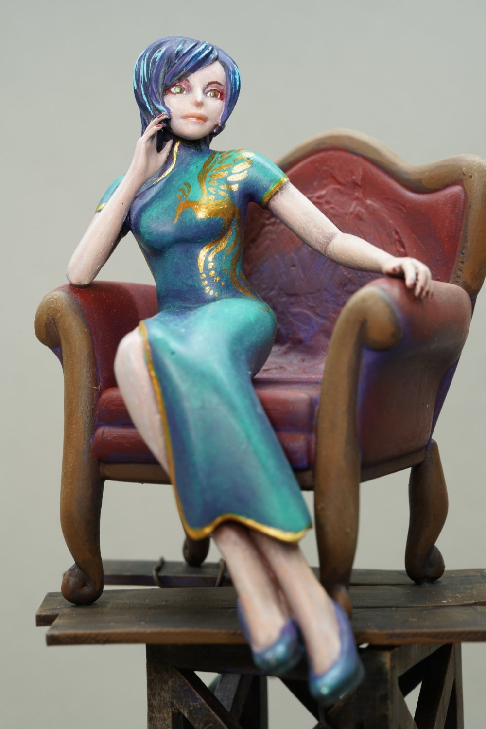 オリジナルデザインの造形作品でエントリーいただくへちこ様、海に沈んだ九龍城のビルに佇む一人の少女・・・といったへちこ様のイマジネーション溢れる世界観の作品が今回も登場です!ハンドペイントによる淡い色味のチャイナドレスに輝く鳳凰の模様、ネオンサインの光が少女に光と影を作り、物憂げな表情の少女は何を思うのか。見れば見るほど不思議な世界に引きこまれていきます!