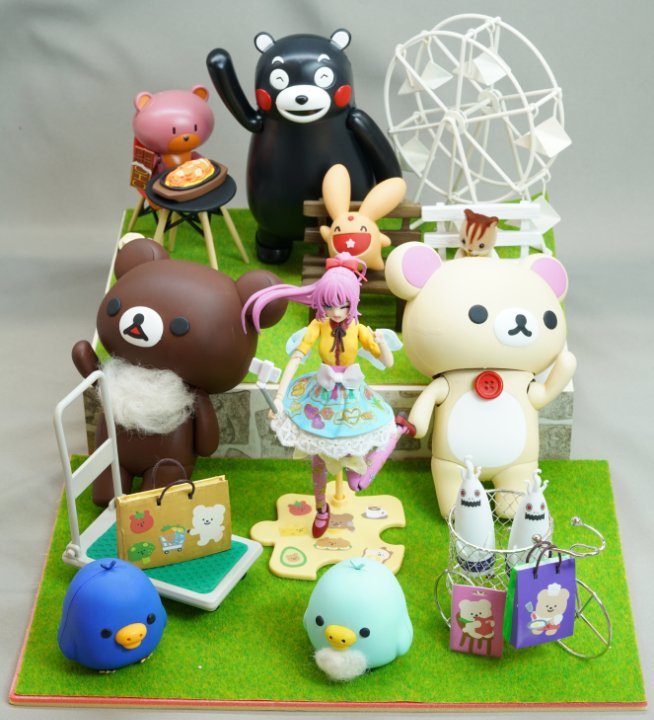 コメント:クマキャラだらけの遊園地にリツカちゃんが遊びに来たよ!リツカちゃんと熊・鳥・小道具にファレホを使用。