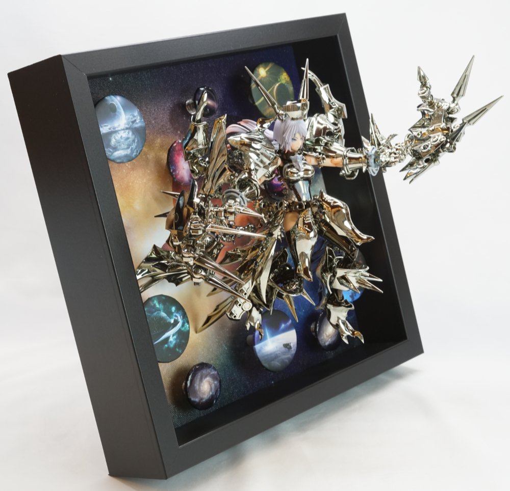 ネビュラをイメージした「星雲」を背景にドラセナ本体の胴体を中心とした白部分はホワイトメッキ、足回りの黒部分はブラックメッキ、そして全体を覆うネビュラのパーツはシルバーメッキで構成され、色味の異なるメッキの組み合わせが見事です!