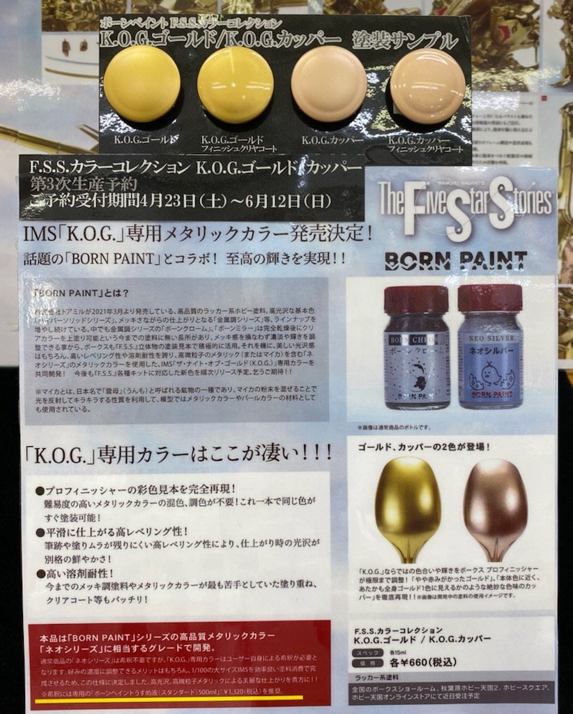そしてIMS「K.O.G.」専用のメタリックカラー、F.S.S.カラーコレクション「K.O.G.ゴールド」「K.O.G.カッパー」も第3次分のご予約を受付中です!