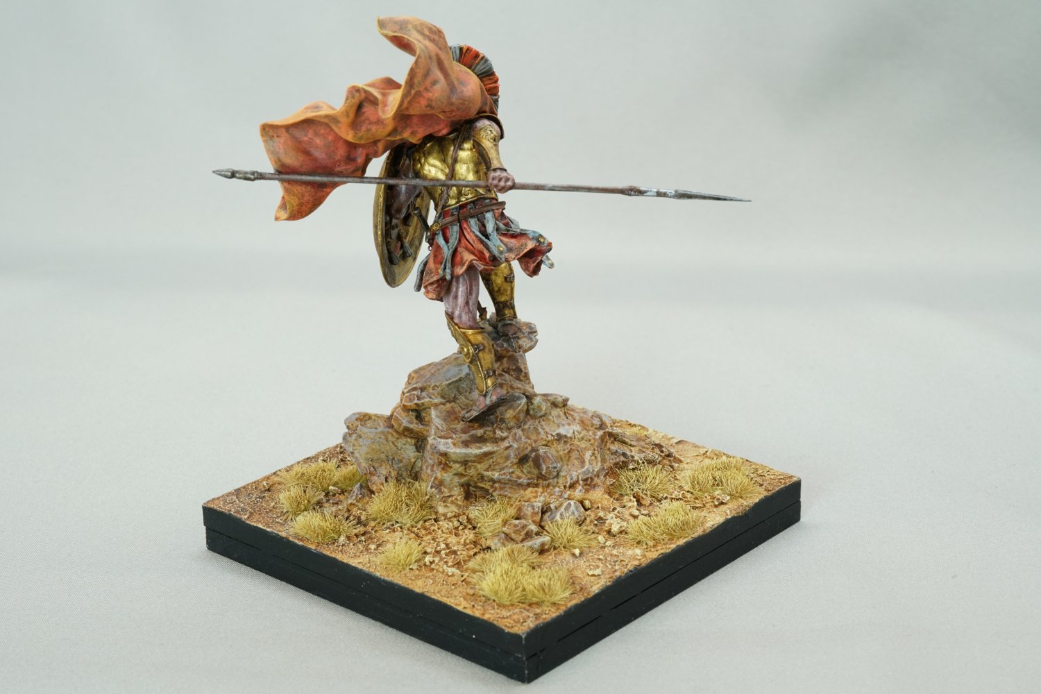 そして軍団長が纏う古代ヨーロッパの印象的な甲冑はファレホの金属色の輝きの中に歴戦において酷使されたであろう汚れ、ダメージが表現されています。甲冑とマントや衣服の淡い色味とのコントラストも素晴らしいです!盾のマーキングがマスキング処理ではなく手書きというのにも驚きました・・・