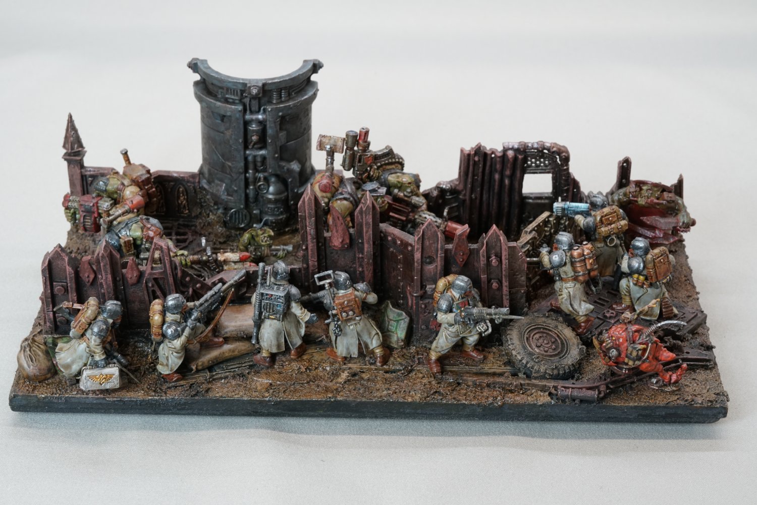 コメント:特殊部隊同士の戦闘をテーマに人類と異種族との戦いをジオラマとして制作。赤と緑以外全てファレホを使用