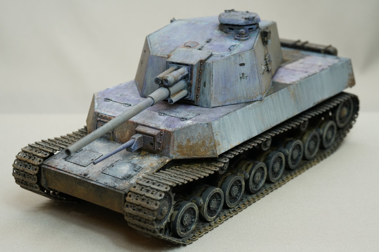 コメント:二式水戦にあるような藤色の戦車が見たい、とファレホのオックスフォードブルーをメインに筆塗りで仕上げました。