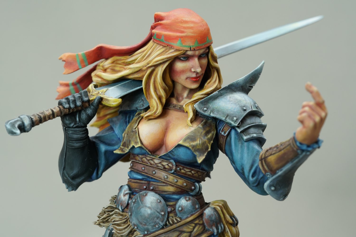NMM塗装が光る大剣や鎧が印象的!アラーナの特徴とも言える腰回りの細かな装飾品も材質によって塗り分けされ、グラデーションのかかった素肌の質感など塗装の見本のような美しい仕上がり!
