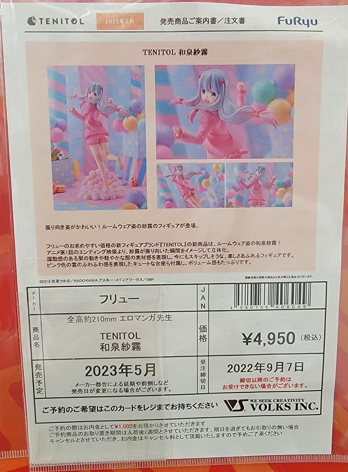 ペンネーム「エロマンガ先生」こと和泉紗霧がルームウェア姿でフィギュア化!アニメ第1話のエンディング映像より、紗霧が振り向いた瞬間をイメージして立体化です。