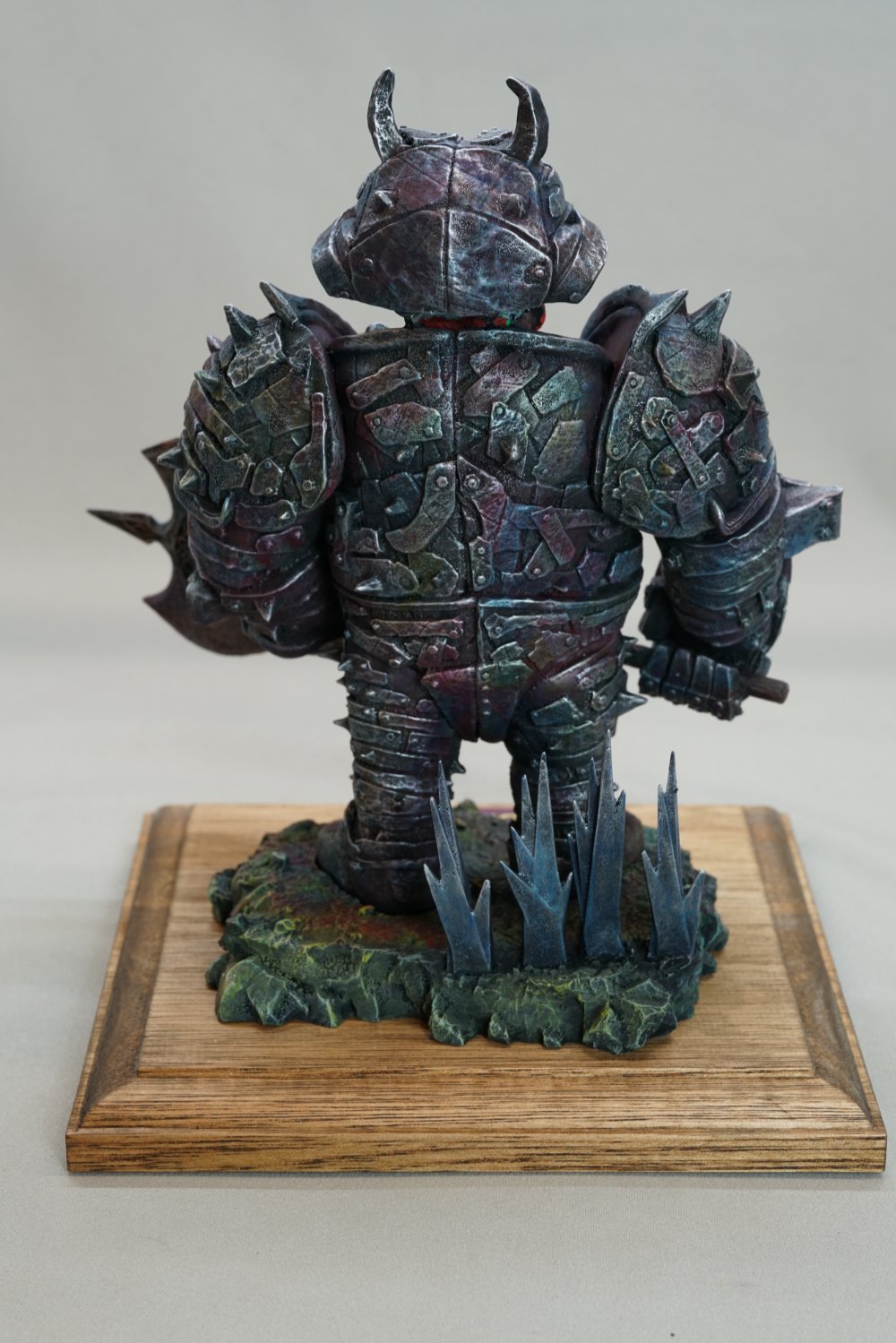 筆塗りによる重厚な金属の質感!ウォッシングとドライブラシによる大坪様の表現技法がデザインと見事にマッチしいています!ガンメタルグレイをベースに金属のテカリを表現するグラデーションが施され、光の当たり方によって色味が変化しているようです!