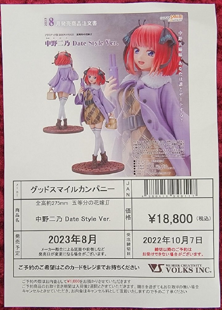 因みに2023年7月発売の中野三玖 Date Style Ver.もまだまだ予約受付中です!
