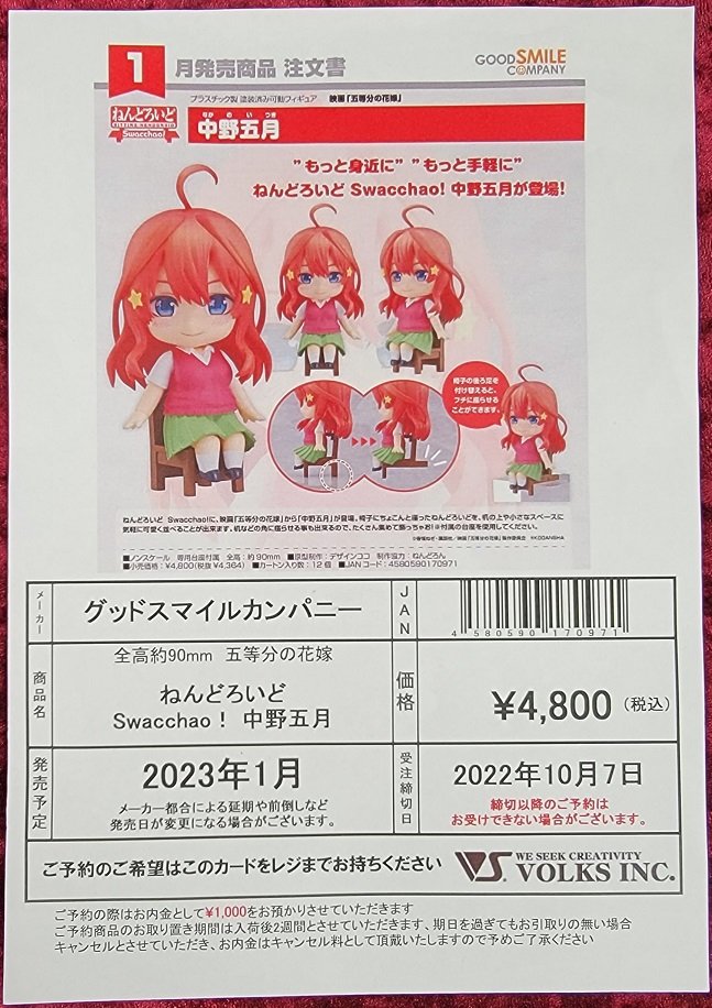 ねんどろいど Swacchao!に、「五等分の花嫁」から「中野五月」が登場です。
