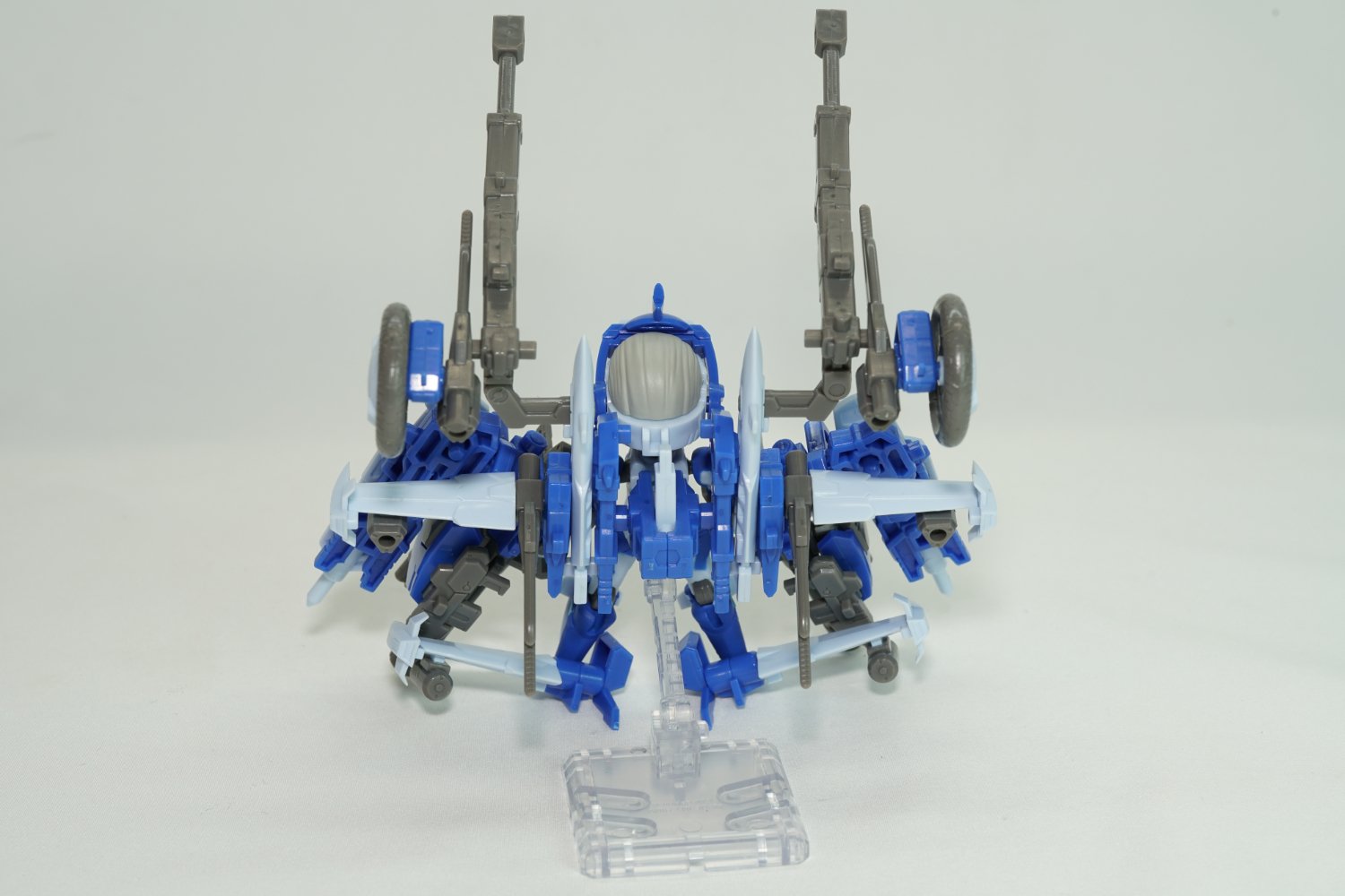 X2Y様作品の特長の一つであるSHOW UPの塗料によるキャンディー塗装がギラリと輝いております!ヘキサギアのブイトールを中心にM.S.G.のパーツをバランス良く組み上げ、どこから見ても密度が素晴らしい唯一無二の超大型機体が今回も健在です!