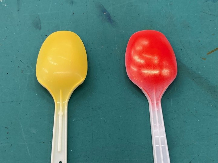 この通りスプーンのような曲面にもムラなく塗装ができました。