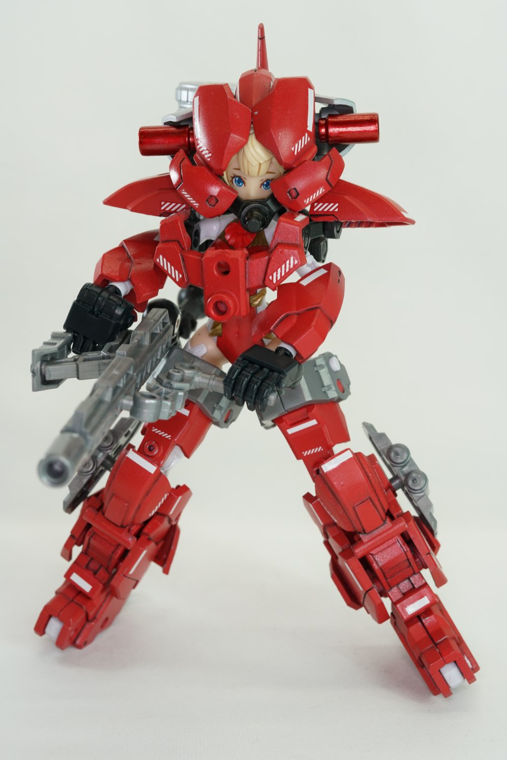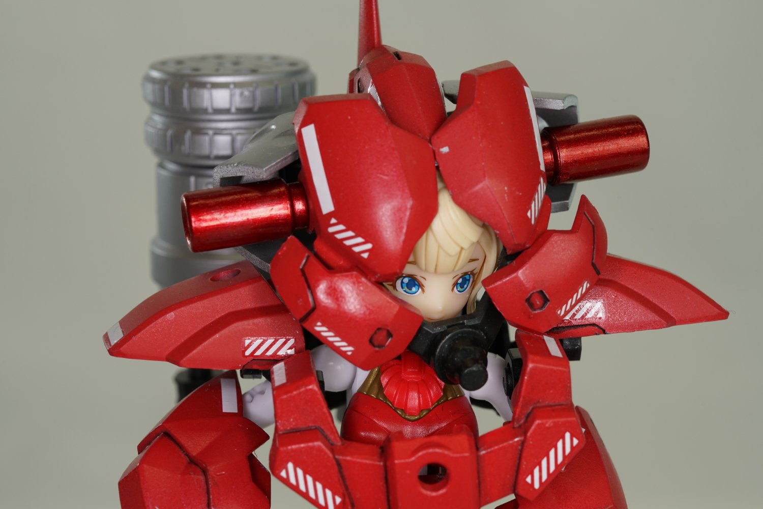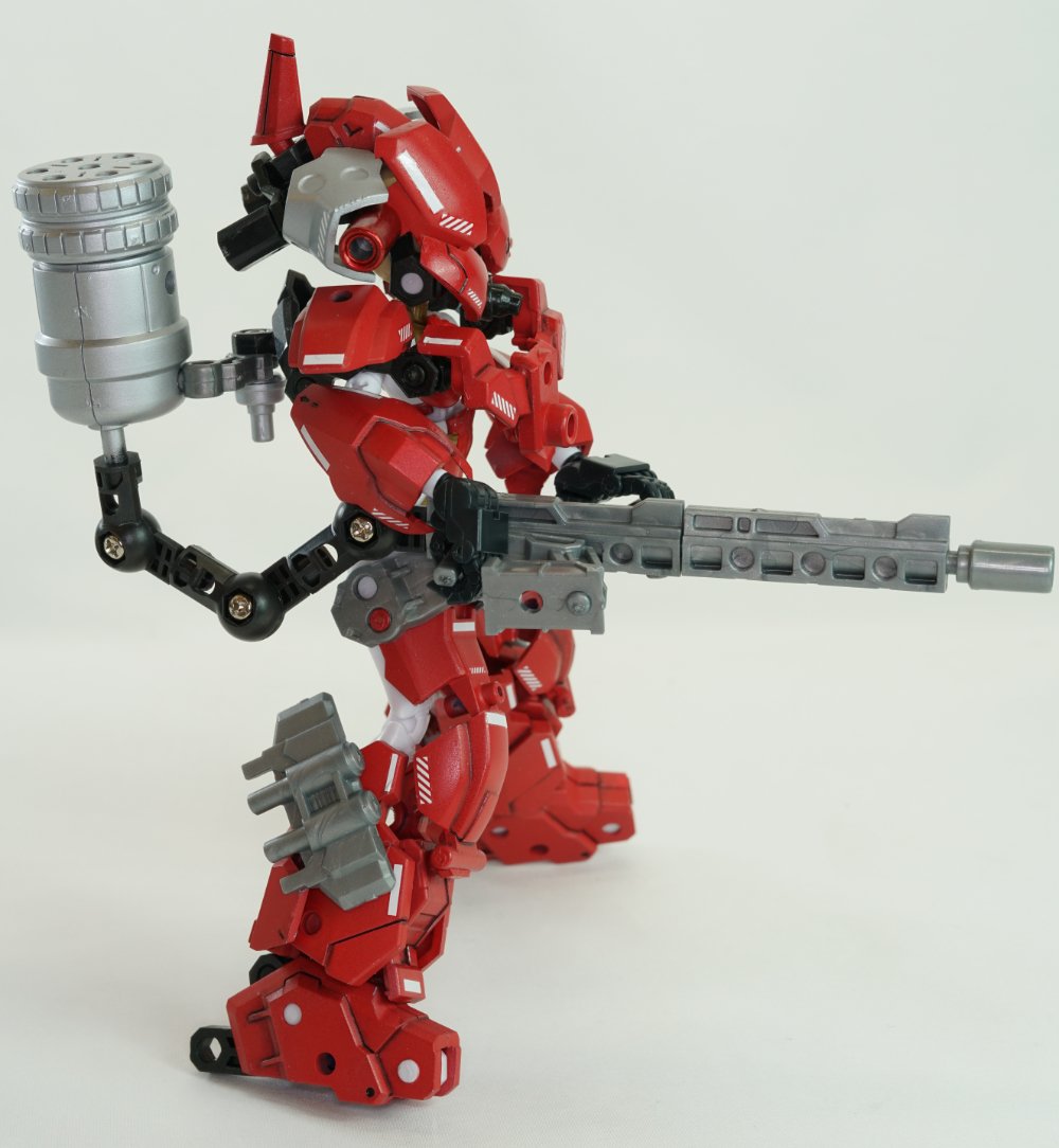 アキレア本体の白部分やジョイントフレームは成形色を活かしています。塗装はファレホがメイン。シルバーをベースにした上から赤を重ねる事で重厚感を出しています。全塗装しなくても、一部のパーツリペイントするだけでも雰囲気が変わります!