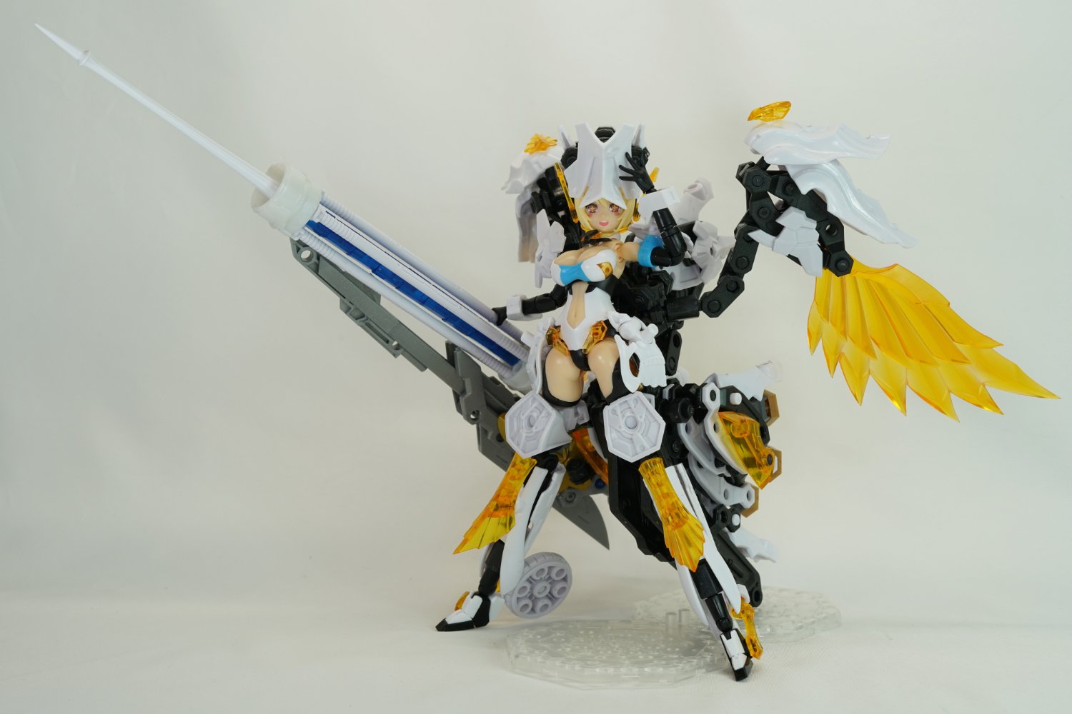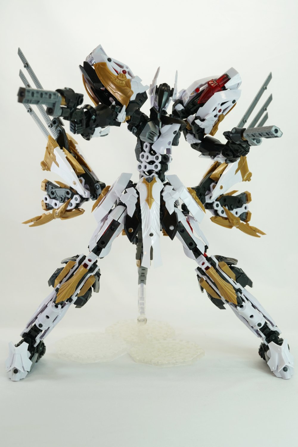 フリー部門の作品はスタイリッシュでエレガントな大型機体!「ひねり」を加えることができるクマキ様発案のフレーム構造が腰部に採用され、腰からのひねりが表現されたダイナミックなポーズ!