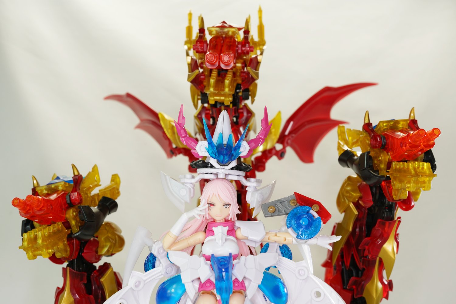 そして後ろの携える巨大な三巨頭竜!先ごろ発売されたブロッカーズビルドパーツセレクション05 ソルジャーⅢランナーのパーツを竜の鼻に配置するというアイデア!レアパーツを含む歴代の様々なパーツによって構成された大迫力の竜たち!