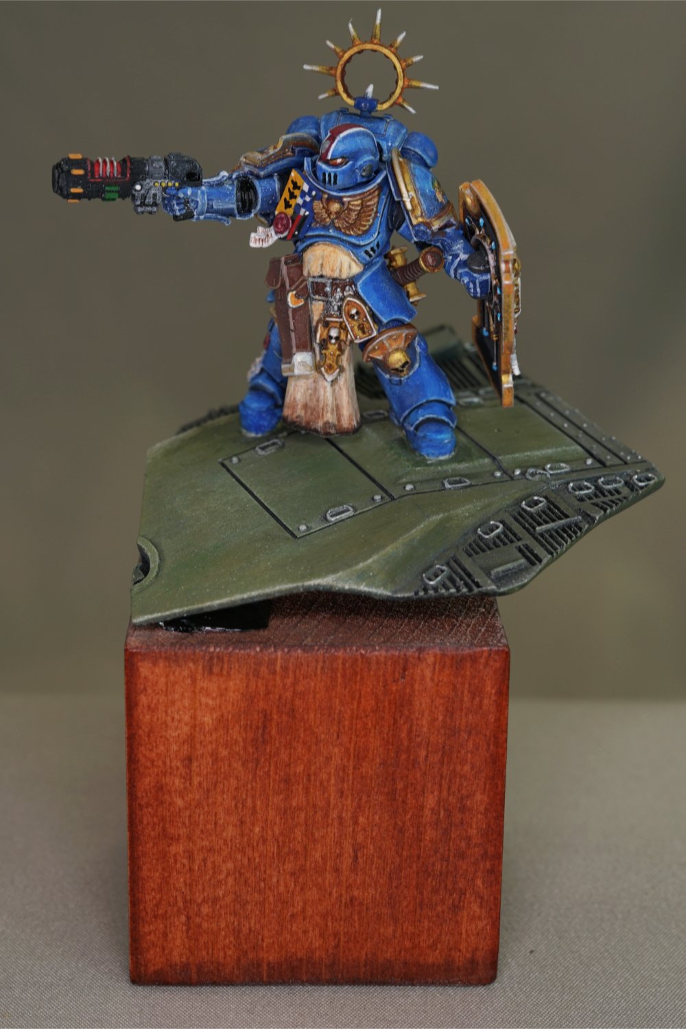 そしてスペースマリーンといえば各キャラクター独自の装備も魅力。SF的な銃にファンタジーな盾、装飾品も各質感の塗り分けにもこだわりを感じます!