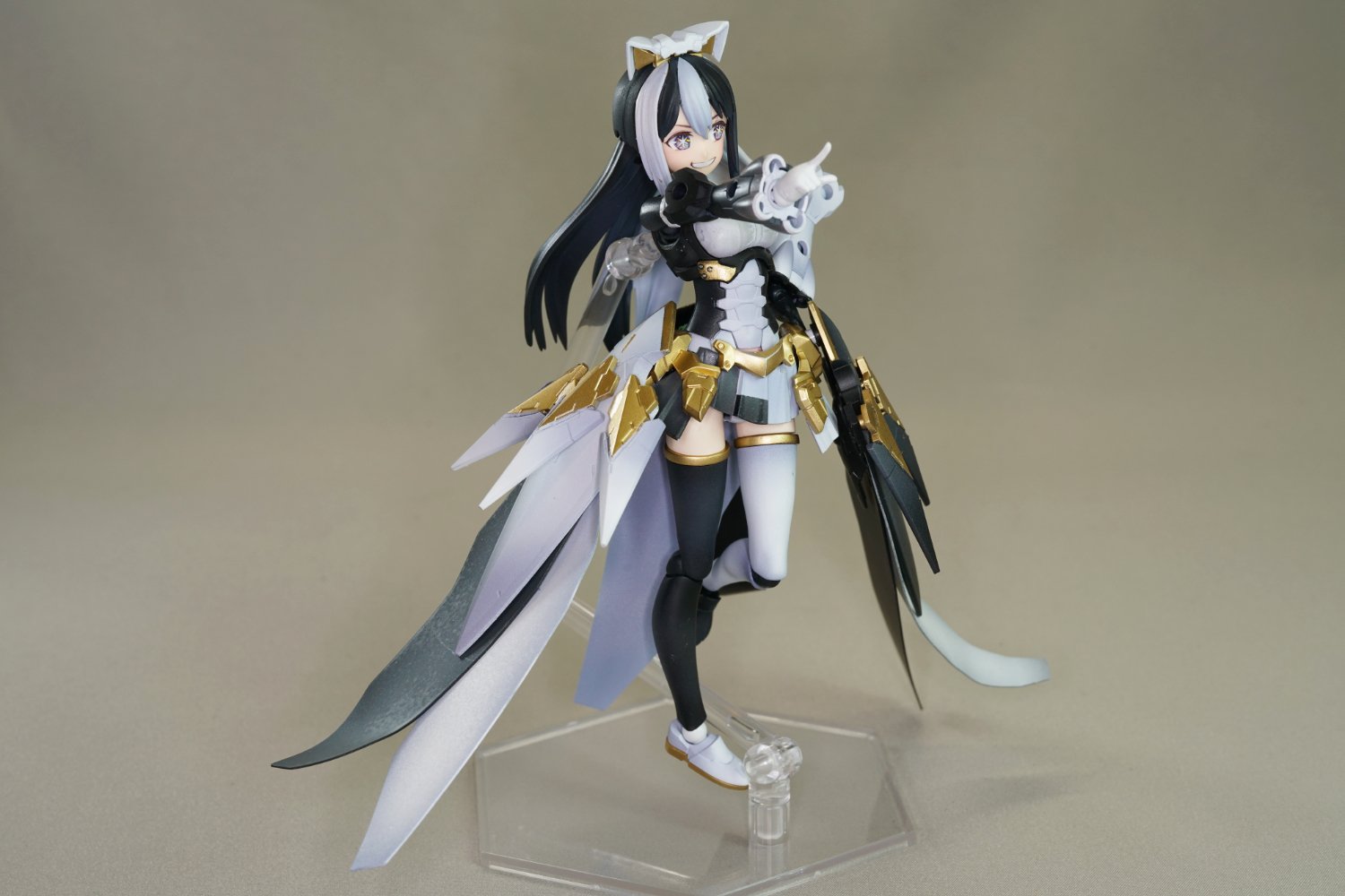 全て30MSシリーズのパーツで構成されているとは思えないほど巧みなパーツの配置とカラーリングで王道アイドルな衣装が表現されています!キラリと光るアイペイントは手書きです!
