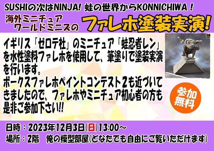 ●12月3日(日)「海外ミニチュアワールドミニズのファレホ塗装実演!」