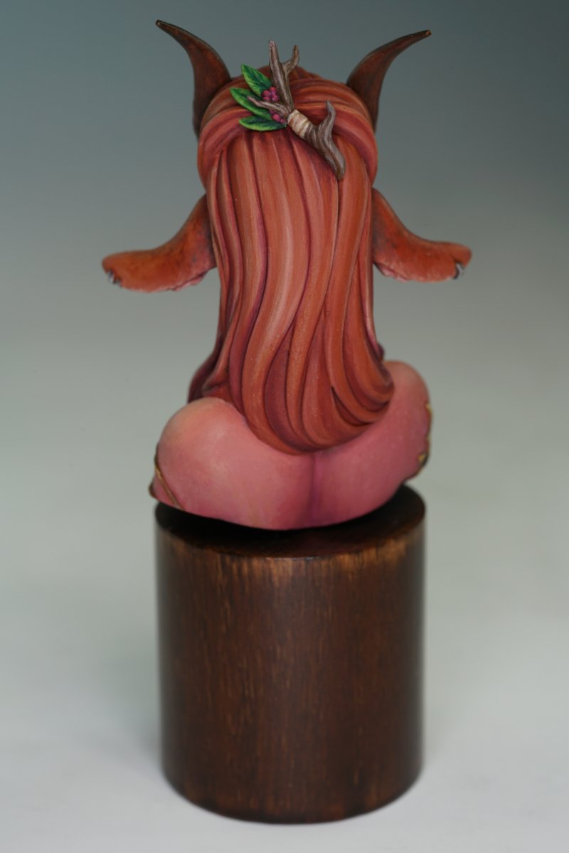わずか35mmのキットとは思えない情報量と緻密な塗装はむらい様ならでは!全体が秋の紅葉色となっています。台座をカットして制作されている地面の落ち葉はもちろん、纏っている服の葉も1枚1枚色味が異なります。
