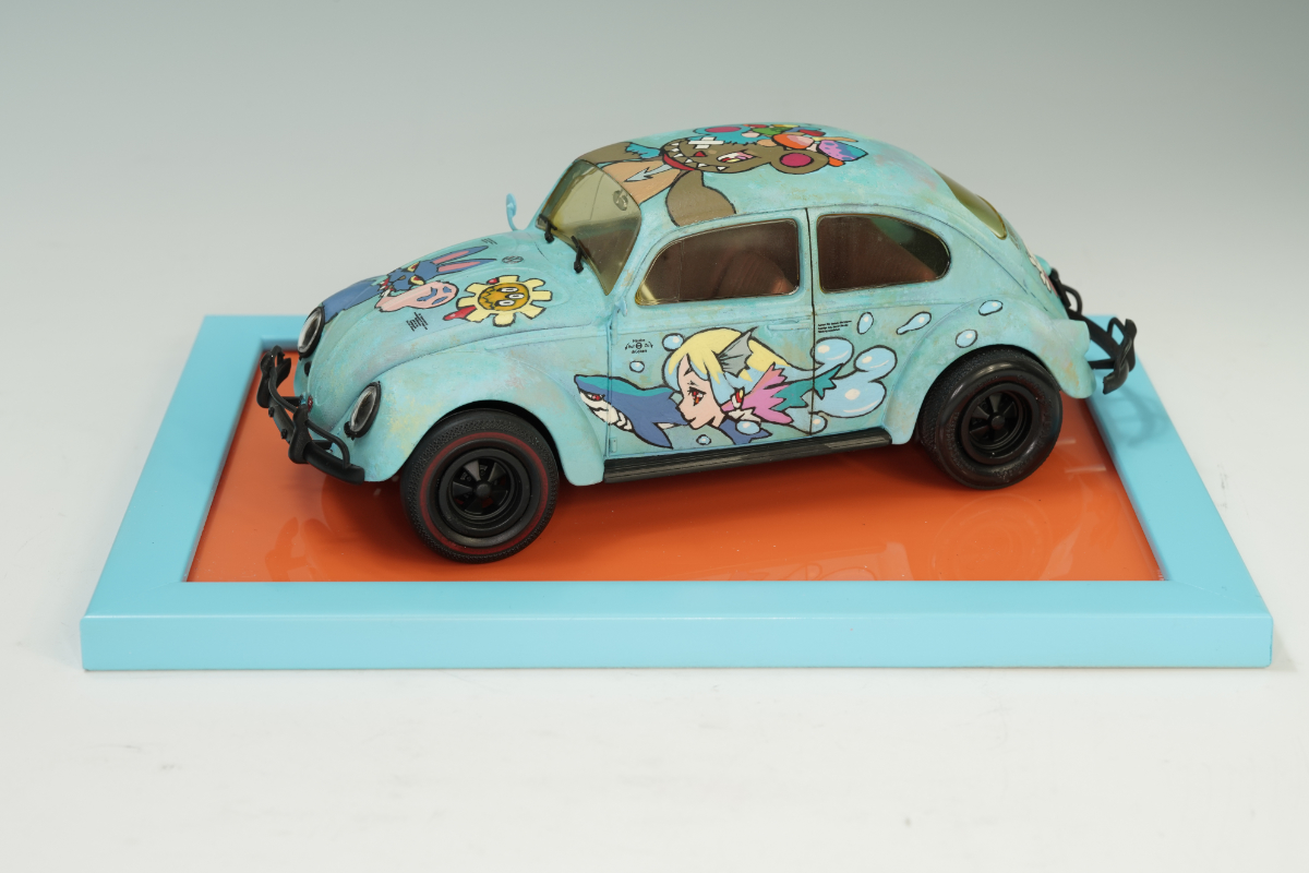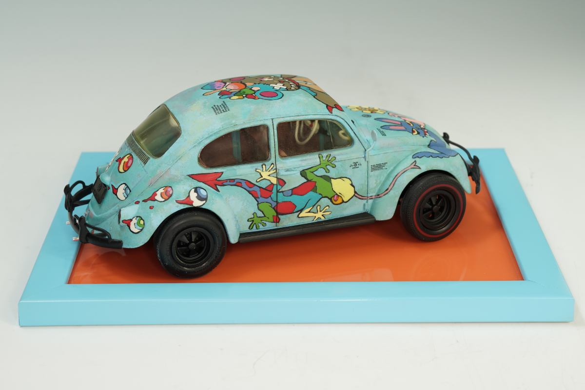 坂本コウジ様には2作品エントリーいただきました!まずはスカイブルーのタミヤのフォルクスワーゲンビートル。車体の各部に描かれたイラストに注目!ポップなデザインとカラーリングが可愛いオリジナルデザインなのです!前回もエントリーいただいたマシーネン作品のペイントも記憶に新しいところです。模型だからこその楽しみ方を表現されています!
