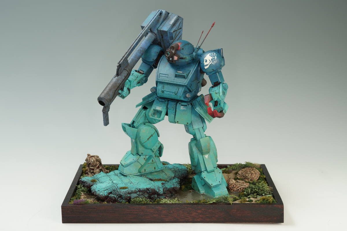 2作目はヘビィ級AT・マックスファクトリーのPLAMAX1/24ストライクドッグ!。ファッティーの色味にも近い鮮やかなエメラルドブルーから深みのある青へと変わっていく本体のグラデーションが美しい!重厚なデザインに鮮やかなカラーリングという組み合わせが斬新です。