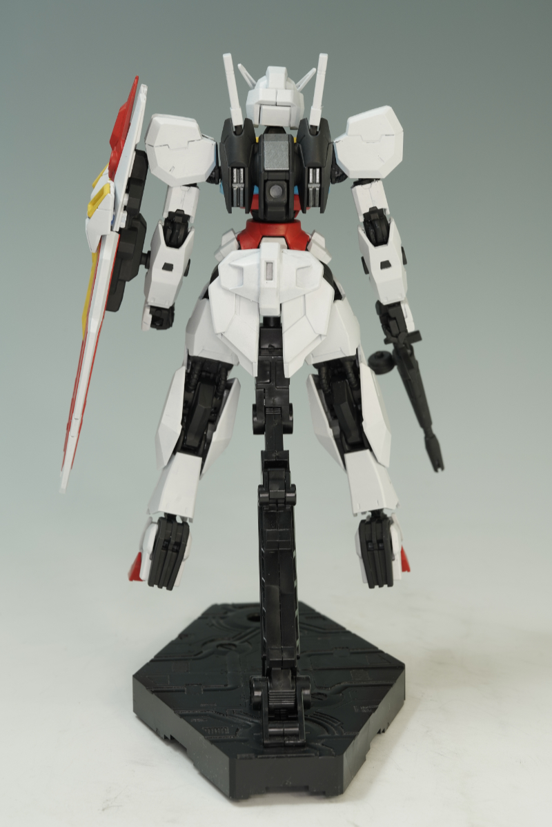 水星の魔女に登場したMS型ガンビット・ガンヴォルヴァをお持ちいただきました!全身グレーでシックなカラーリングだったのが鮮やかなトリコロールカラー仕様に! ガンダムカラーになることで改めてガンダム系統のデザインということを再認識!