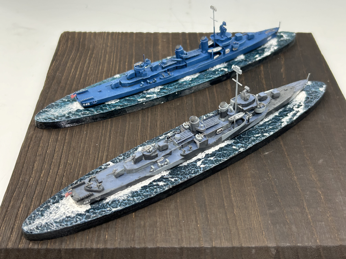 コンテスト初参加のレッドパンチ様、アメリカ海軍の駆逐艦を2艘セットでお持ちいただきました!鮮やかな青の船体のDD-445とニュートラルグレーとシーブルーの落ち着いた色味の迷彩のDD-797が対照的。ファレホはAFVや航空機だけでなく艦船模型に最適な色も揃ってます!