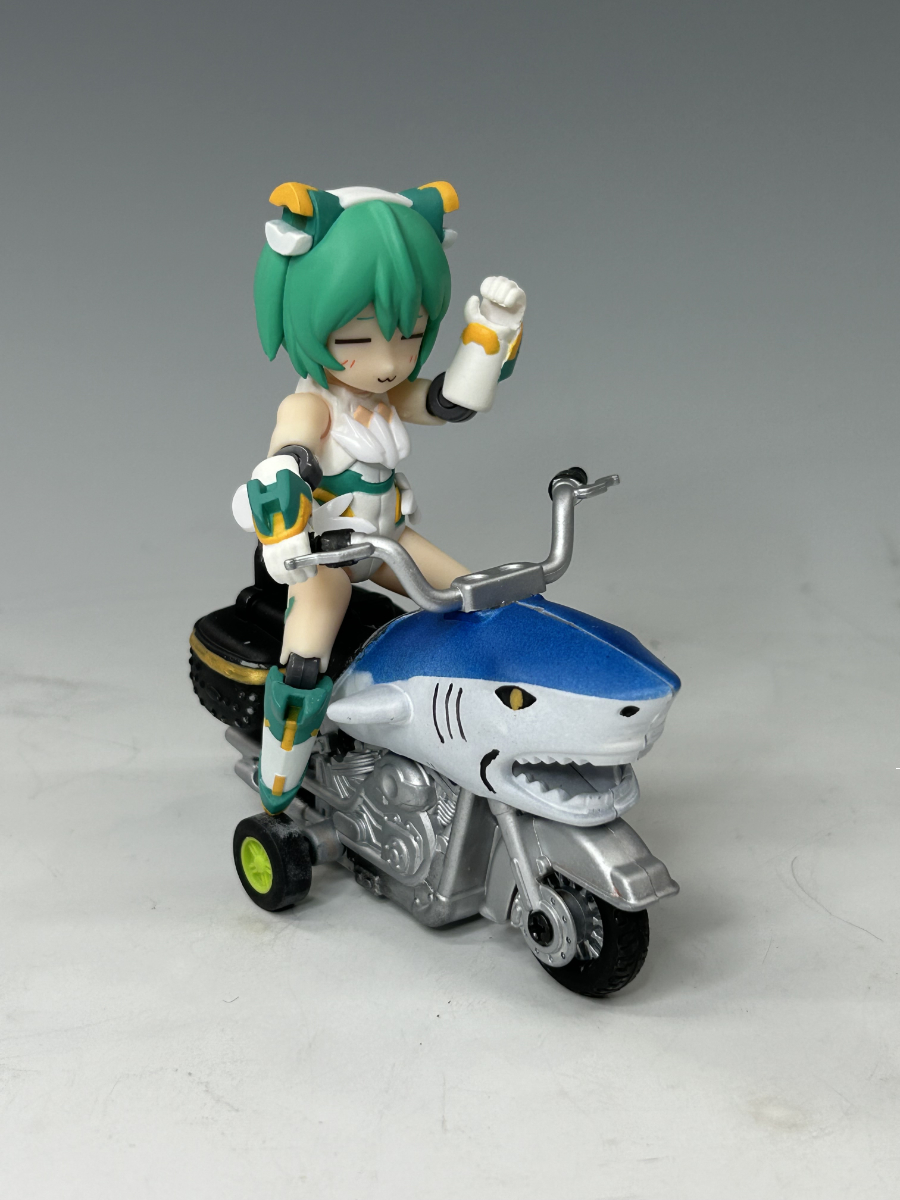 初参加のkote2様には2作品お持ちいただきました!まずはサメバイクにちょこんと乗ったDTAシルフィーちゃん。鮮やかに輝くバイク本体のシルバーはリニューアルされさらに発色が良くなったゲームカラーの金属色の特徴が出ています。