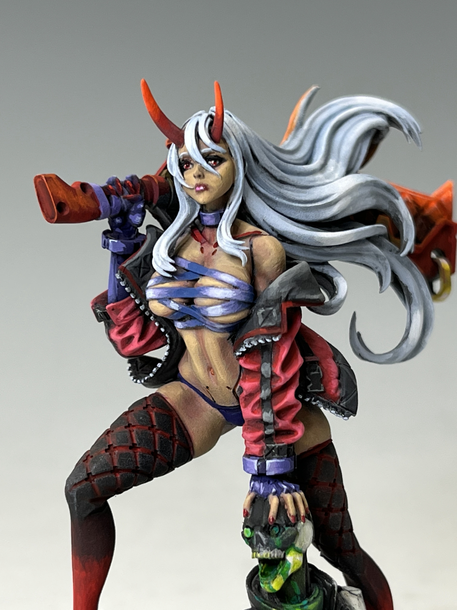 コメント:初の褐色美人に挑戦しました。それぞれ質感を意識して塗り方を変更し、兵士も添え物にならない様に工夫しました。ジャケットと銀髪の塗装が一番上手にできたと思ってます!