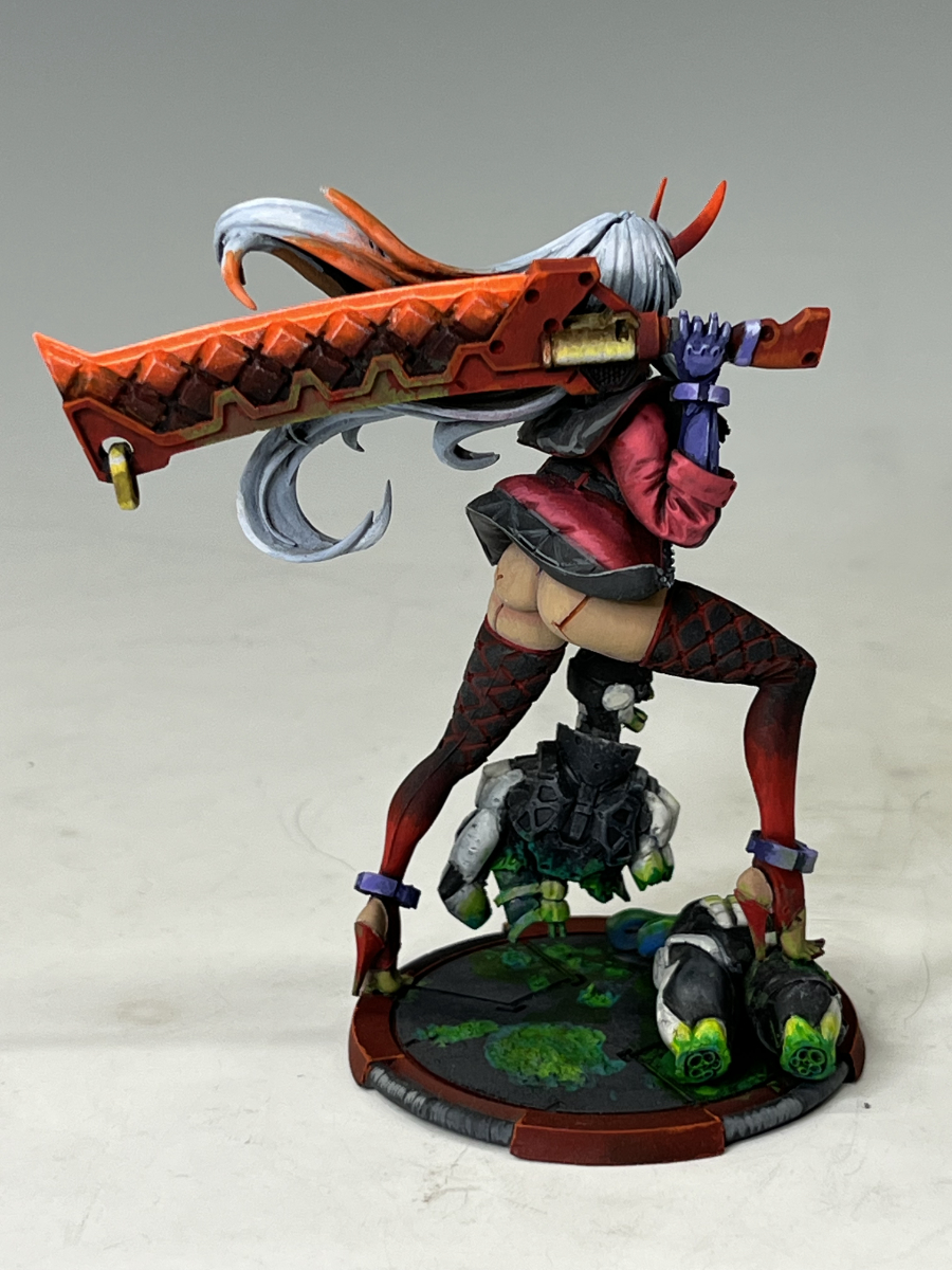 コメント:初代と比べると複雑な色合いをファレホ筆塗りで再現しました。伸びの良さや隠蔽力の強さを活かした、頭部と下半身の塗り分けに注目していただければと思います。
