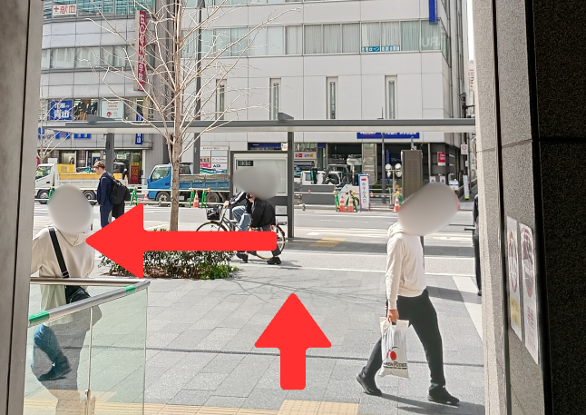 エレベーターで地上に出たら、矢印の方向へ進み、「高島屋」を目指します。