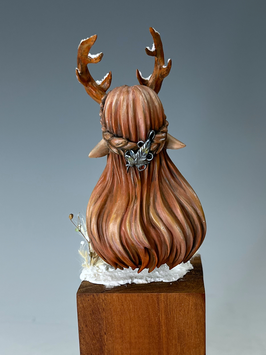 その立派なツノや台座には雪が積もっており寒そうな表現と、温かみのある肌の彩色のコントラストが映えています!
