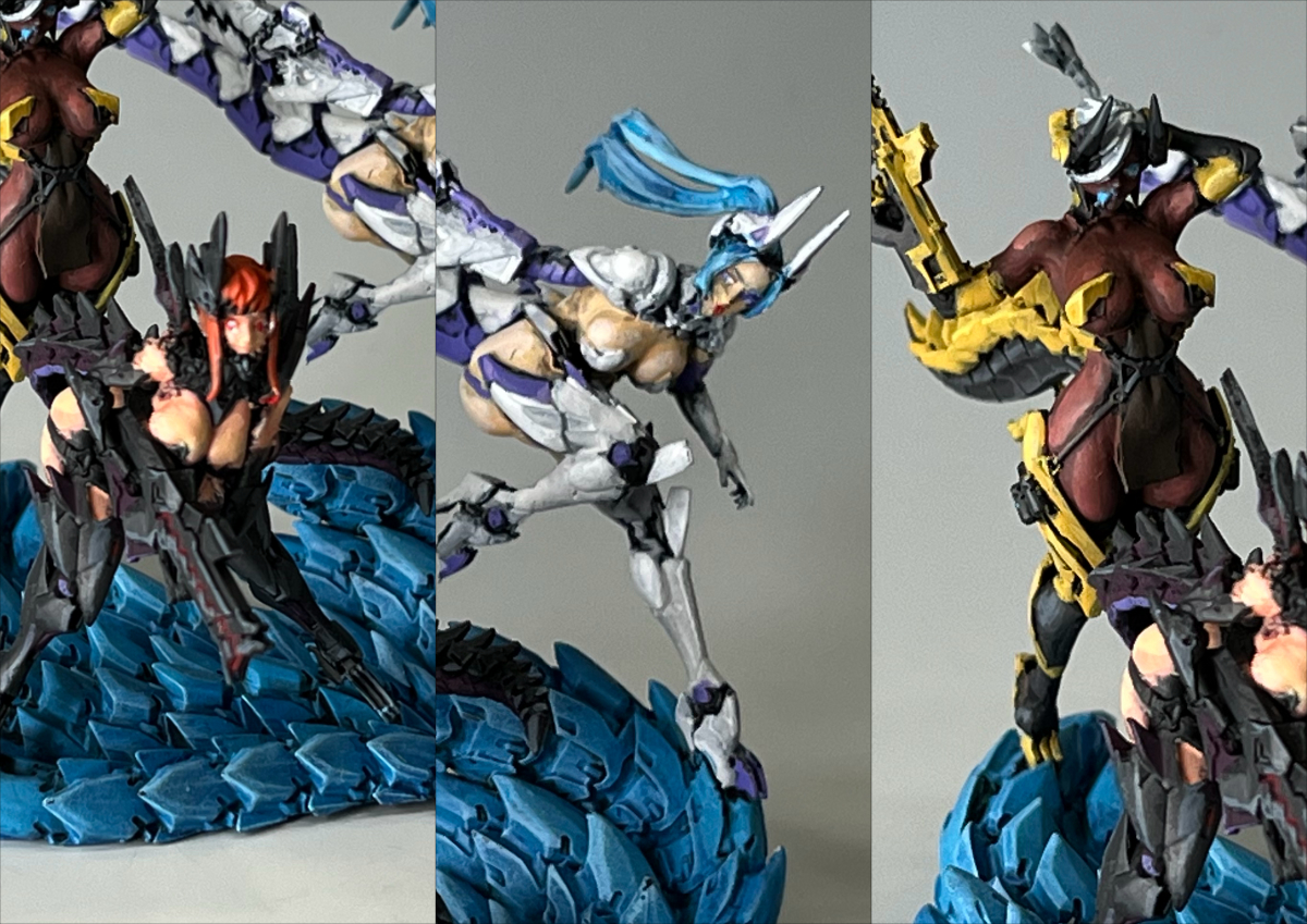 肌の色や装甲の色など3人とも違う色で一人一人の個性を表現されているのもお見事ですね。
