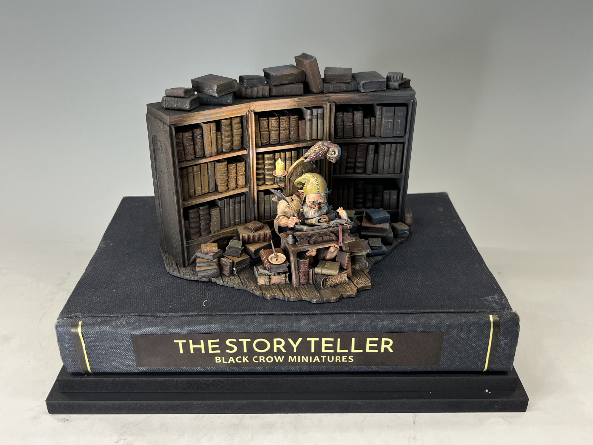 ファレホペイントコンテスト4のラストを飾るのはコーイチ タケダ様の2作目。何と最後にエントリーいただいた作品が最優秀賞受賞となりました!ブラッククロウ社のストーリーテラーは老人と椅子机と周りの本のみのキットです。何と背景の本棚と本は全てタケダ様のハンドメイド!そして台座は本物の古書を使用されており、細部に至るまでタケダ様のこだわりを感じます。そして本当に実際に光が当たっているかのような光源を意識された塗装は芸術的。せひ色んな角度からみていただきたい作品です。