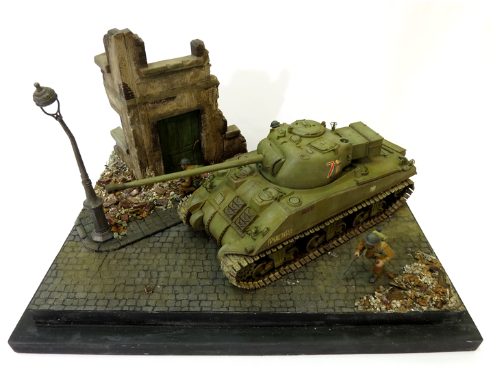 製作者様コメント:イギリス軍の戦車が街の曲がり角にさしかかった状況をジオラマにしました。