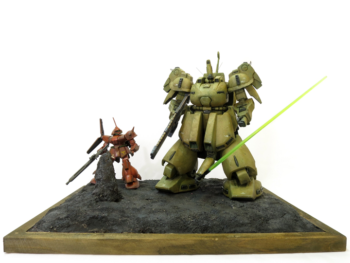 製作者様コメント:ジ・オとマラサイがどこかの小惑星に降り立ったイメージです。ジ・オは1/144のキットですが1/220の設定です。