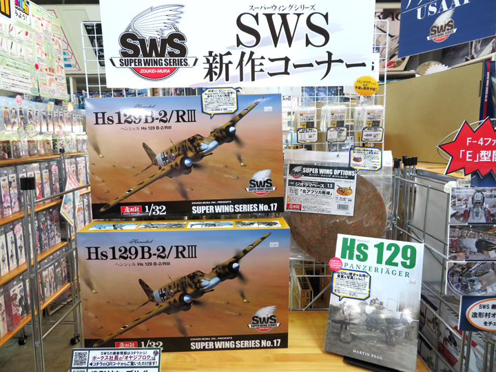 Hs129と今回紹介致しましたアフターパーツは、札幌ショールームホビー側入り口入ってすぐのこちらのSWS新作コーナーに展開中!