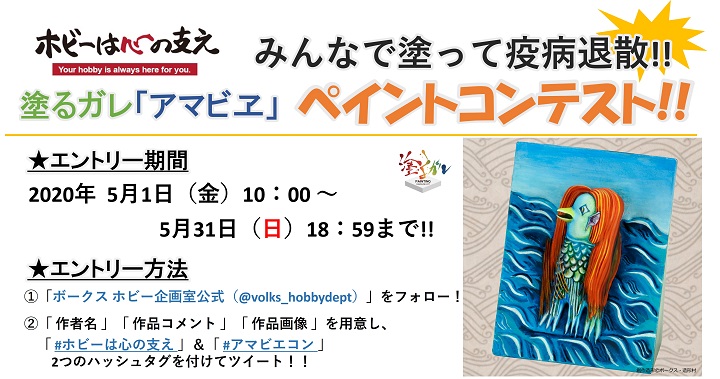 ボークスの塗るガレ「アマビヱ」は、一刻も早く新型コロナウイルスが終息してほしいという願いと、色を乗せる度に、完成に近づくワクワク感と彩り豊になっていく色塗りで、心から明るくなってほしい。この想いを胸に、商品化!