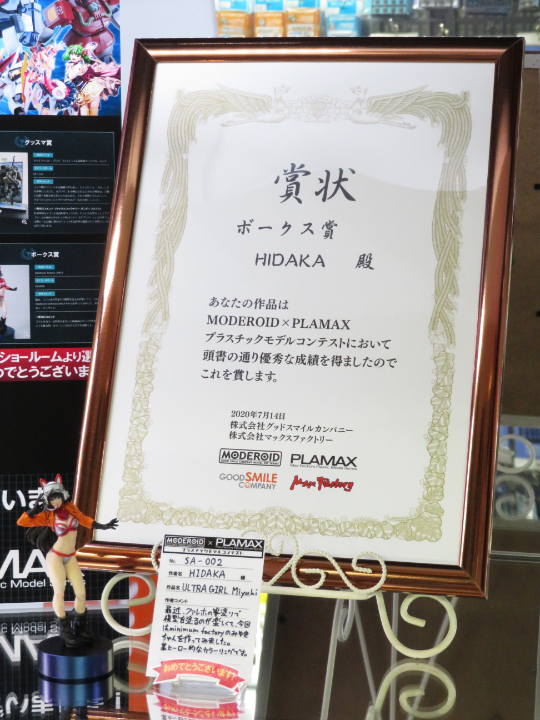そして、なんとHIDAKA様の「ULTRA GIRL Miyuki」が沢山の参加作品の中より「ボークス賞」を受賞いたしました!