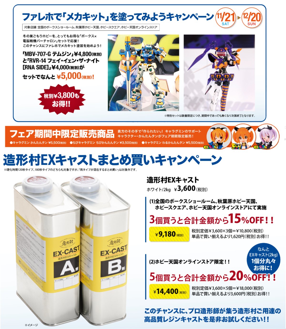 その2!「ファレホでメカキットを塗ってみようキャンペーン」、「期間限定販売、キャラグミン かんたんタン」、「造形村EXキャストまとめ買いキャンペーン」