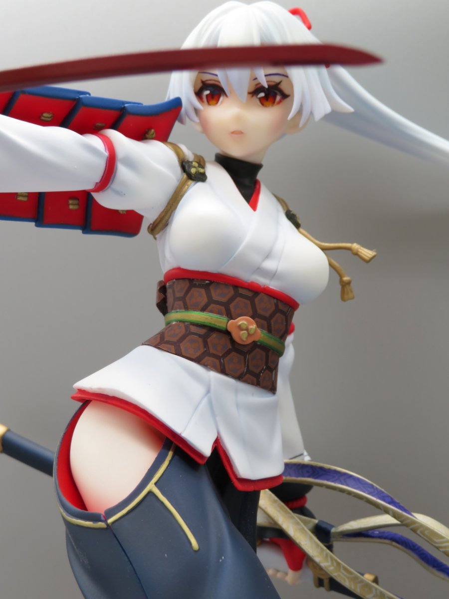 製作者様コメント:パーツを見た瞬間「あっ・・1カ月じゃ無理」と思いました。苦労した点は思った以上に塗り分けが多くマスキングの工程が多かった事と刀の鞘の飾り部分の柄は苦労しました。台座はあった方が雰囲気が出るかと思い作りました。