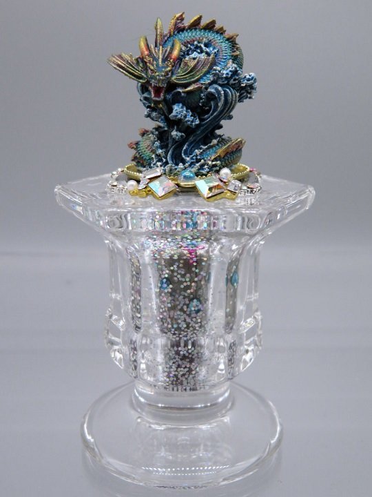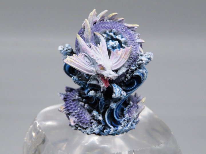 スタッフコメント:こちらもミニリヴァイアサンでのご参加です!水と関係性がある竜の蛟(みずち)をイメージされた作品で、体の細かなグラデーションが映え、要所に塗装された金色が華やかさを増しています。ミニサイズにもかかわらず細部の書き込みがスゴイ!小さくても迫力満点ですね!台座も煌びやかで本体をしっかりと目立たせています。