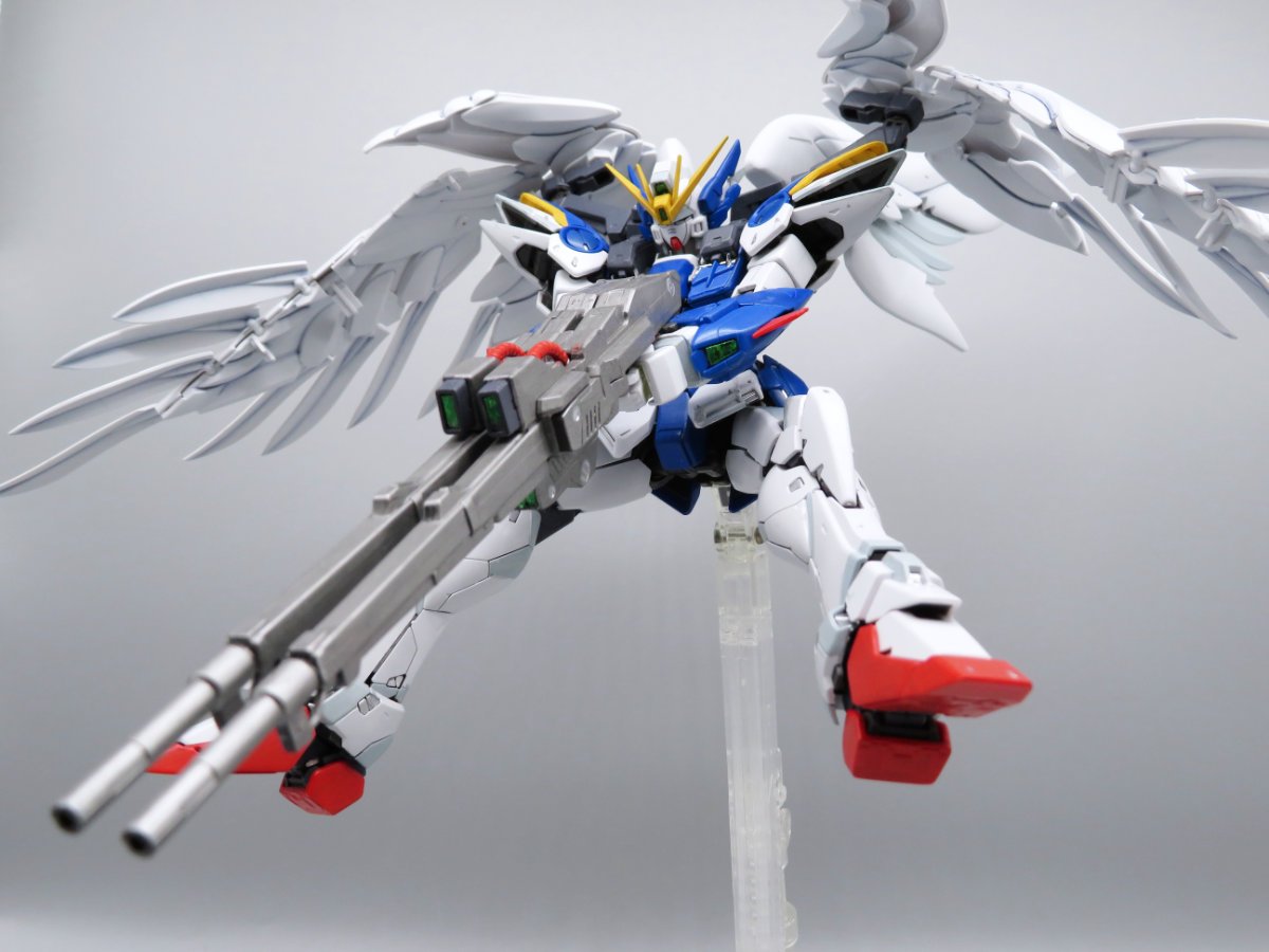 スタッフコメント:ゼロカ・・・失礼しました、今はウイングガンダムゼロ(EW版)でしたね。各部にペールグレーブルーを使用し、MGをRGの様に塗り分けるという製作者の熱いこだわりを感じられる素敵な作品ですね!上空からシェルターに向けてツインバスターライフルを撃つシーンを見事に再現されており、とてもカッコイイです!!