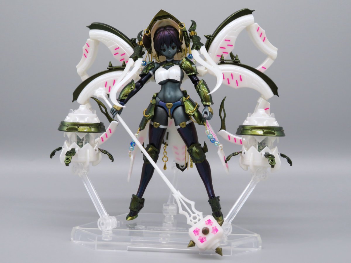 スタッフコメント:ベースのラーニアを感じさせない、異形な色とても素敵です。そして、本体の色に合わせて各装備もオリジナルのカラーで塗装していてベストマッチ!イカの触腕や武器などの細かいパーツなどピンク色で塗装しており、しかも「くらげ」が発光しており目が離せない素晴らしい出来です!!