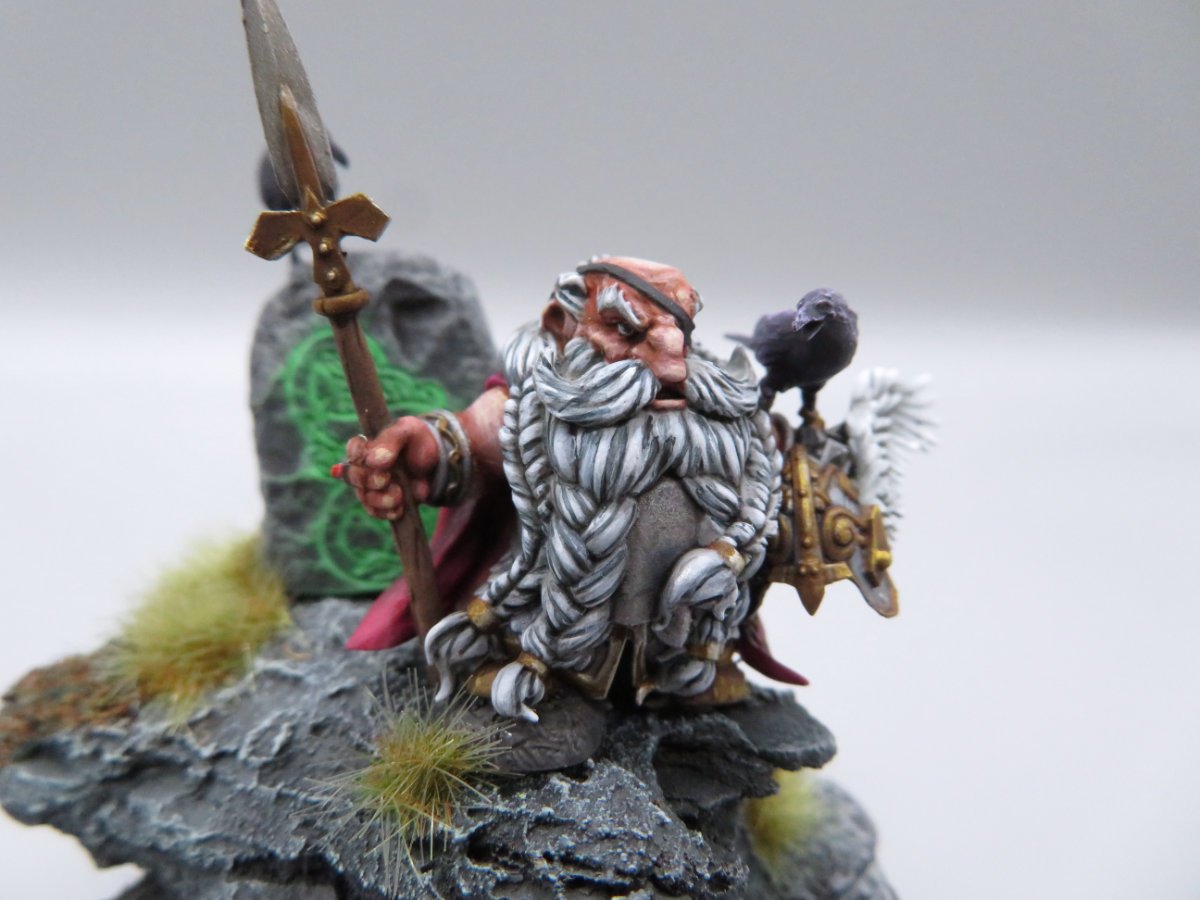 スタッフコメント:使い込まれたかのような武器と兜がまるで歴戦の戦士の様ですね!足場の岩や、背後の緑色の模様が刻まれた石も本物かと思う様な色の仕上がりで素晴らしいです!