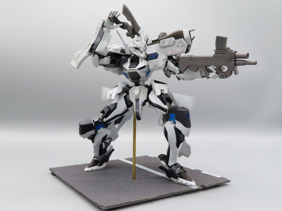 スタッフコメント:原作版のゲームは知る人ぞ知る名作、マブラヴシリーズの「トータル・イクリプス」にて主人公の「ユウヤ・ブリッジス」が使用する専用機!機体のボディ部分はストレートな白色の上から、エッジ部分にうっすらとグレー系の色を重ねメリハリを出していますね!脚部の青色はキャンディ塗装となっており、クリアパーツに負けない輝きがあります!ポージングも戦闘中のワンシーンのを切り取ったかのような躍動感がありとてもカッコイイ!