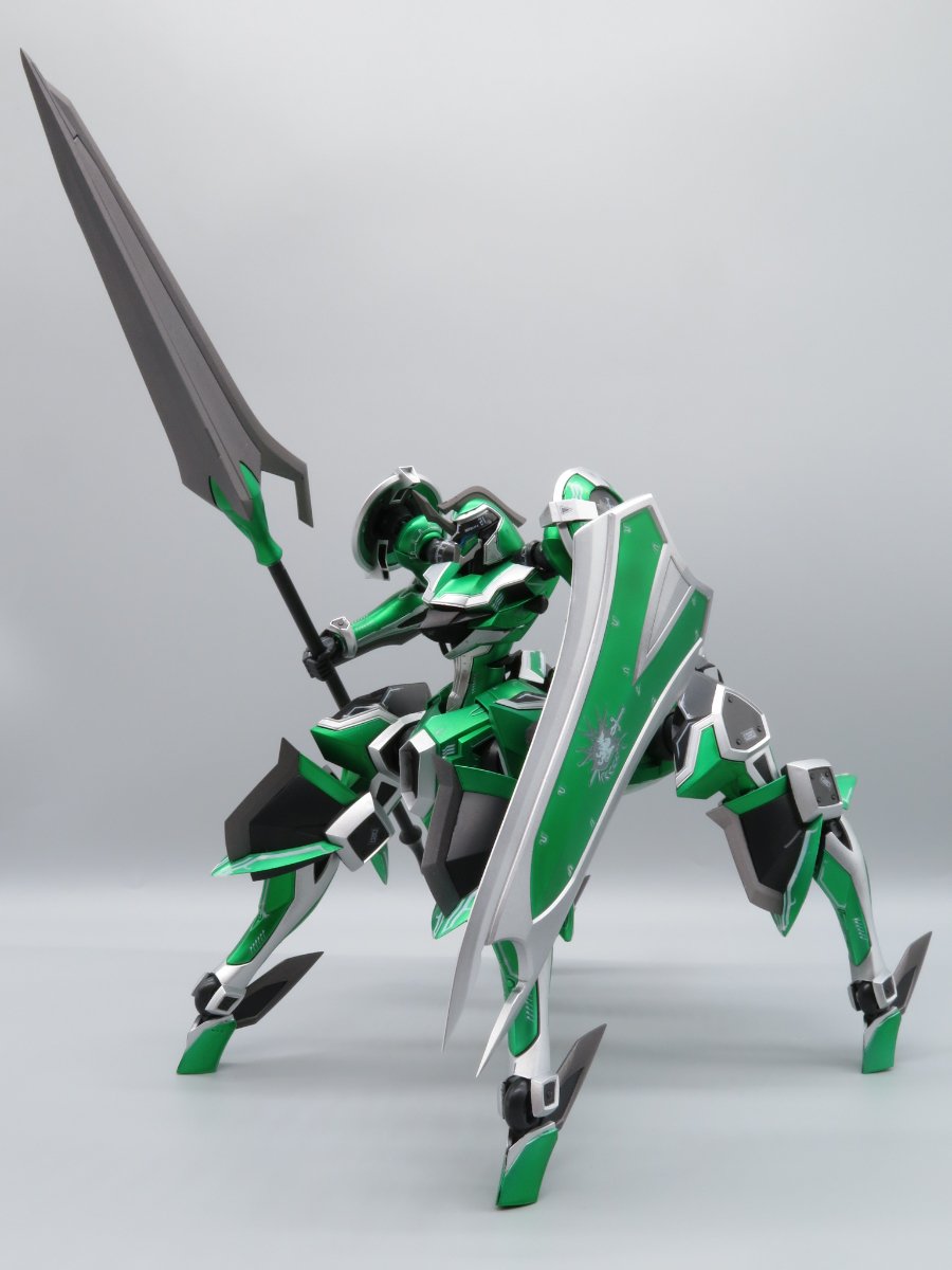 スタッフコメント:KAZU様が得意とされているキャンディ塗装ですが、今回のグリーンもとても綺麗に輝いていますね!シルバーの部分は逆に光沢を抑えて塗装されていますので、金属特有の鈍い輝きと重量感が出ています!全体的に重みのある仕上がりとなっていますので、プラスチックとは思えない驚きの出来ですね!