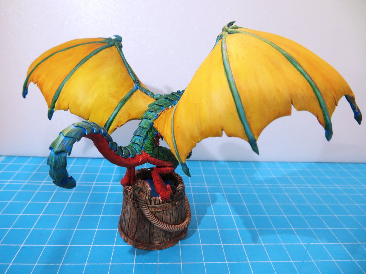 ③腹の部分はプラズマレッドを塗装した上から、翼の部分はインペリアルイエローを塗装し、両方とも上からドワーフスキンにエクスプレスメディウムを1:1で混ぜた物を重ね塗りしました!