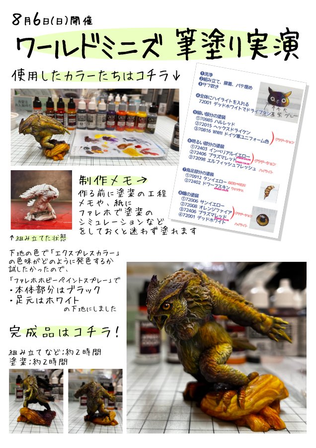 今回塗装した「オウルベアー」と塗装工程、おすすめ用品などは実演コーナーで紹介中ですので、ぜひご参考にどうぞ!